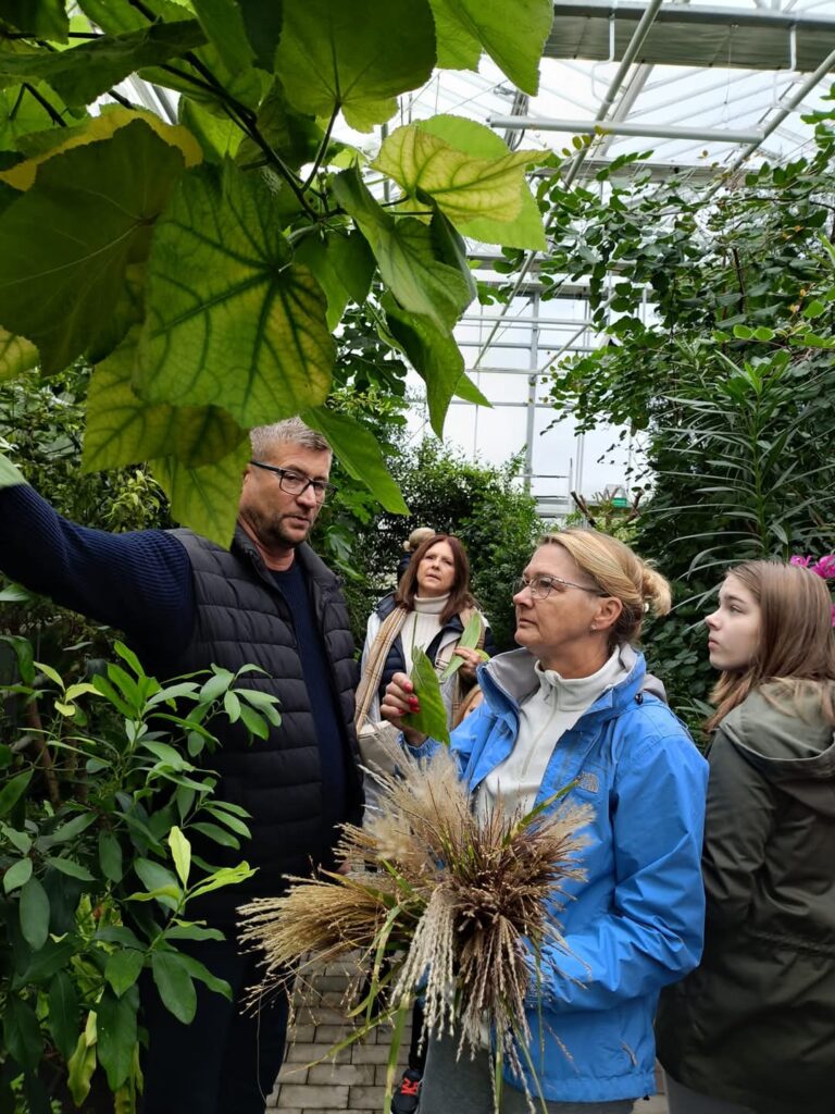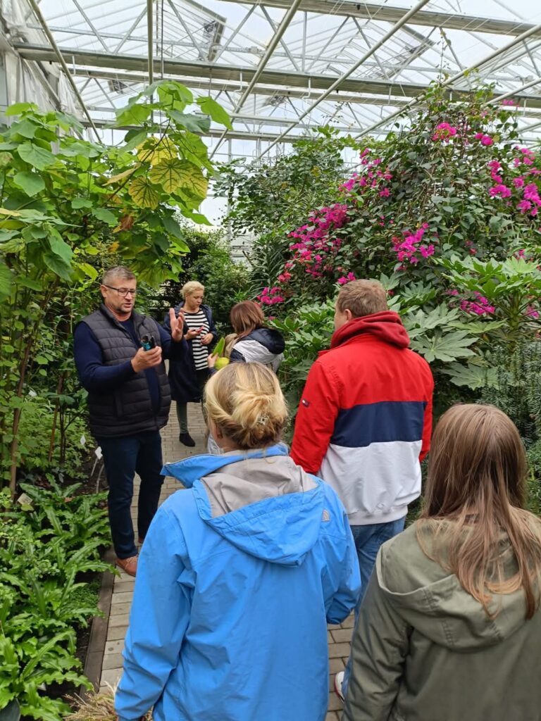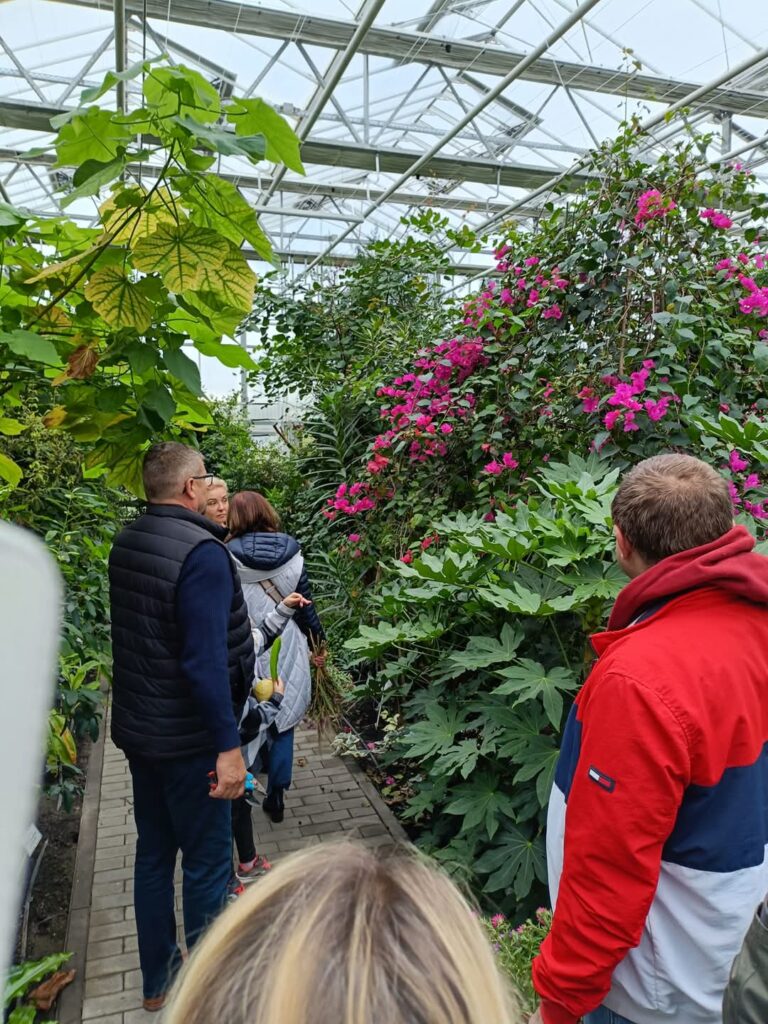 Dzisiejsze popołudnie, spędziliśmy bardzo aktywnie w wyjątkowo pięknym miejscu Ogród Botaniczny KCRZG IHAR PIB , gdzie w piękną podróż, jakże zagraniczną zabrał nas sam kierownik Jarek Mikietyński. W to jesienne popołudnie mieliśmy okazję własnoręcznie komponować przepiękne bukiety, pozować w gęstych trawach, smakować winogrona, grać na cymbałach. Pogoda była piękna co bardzo nam sprzyjało. Następnie przenieśliśmy się do szklarni gdzie podziwialiśmy w ogromnym skupieniu i z zaciekawieniem słuchaliśmy o nazwach, pochodzeniu i przeznaczeniu roślin. Największą uwagę przyciągnęły min. bananowce, cytrusy, kawa, hibiskusy i kaktusy.