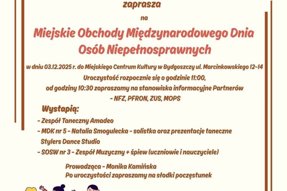 Za nami wyjątkowe Miejskie Obchody Międzynarodowego Dnia Osób Niepełnosprawnych, których gospodarzem był Pan Prezydent Miasta Bydgoszczy Rafał Bruski, a organizatorem Miasto Bydgoszcz. Jako Fundacja Mokkka miałyśmy ogromną przyjemność współorganizować to wydarzenie wspólnie z Miejskie Centrum Kultury w Bydgoszczy – partnerem… Dowiedz się więcej »03.12.2025 r. Miejskie Obchody Międzynarodowego Dnia Osób z Niepełnosprawnościami